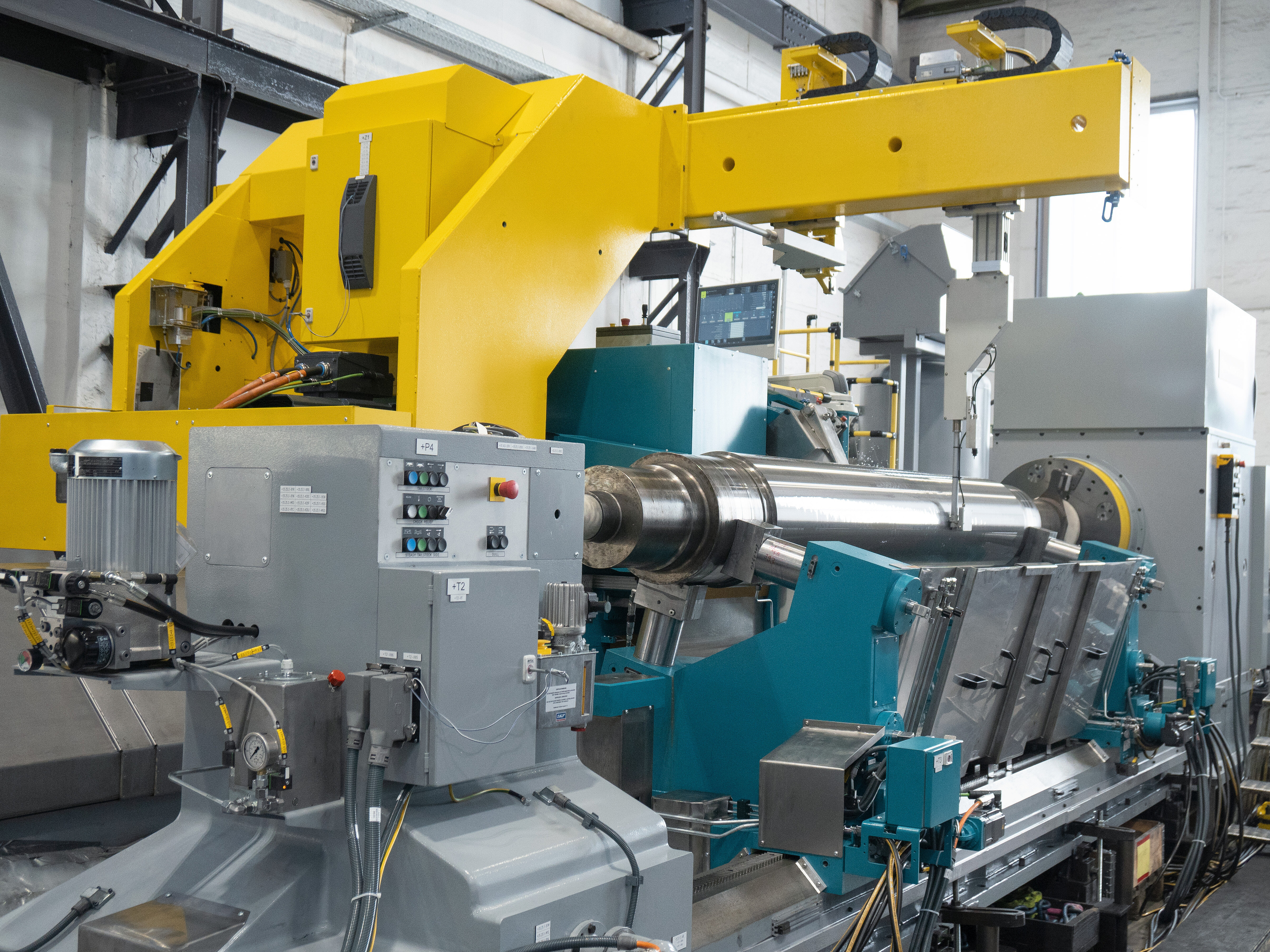 „Mit zwei zusätzlichen Universalwalzenschleifmaschinen Typ ProfiGrind 5500 lassen sich zusätzlich auch noch Stütz- und Zwischenwalzen mit und ohne Einbaustücke mit einer Walzenlänge bis 7.000 mm und einem Maximalgewicht von 55 t bearbeiten“, erklärt Jannik Schneider. Eine weitere Besonderheit: Neben der herkömmlichen Schleifbearbeitung lassen sich, dank des Drehstahlhalters, an neuen Walzen außerdem kleinere Drehbearbeitungen vornehmen.
